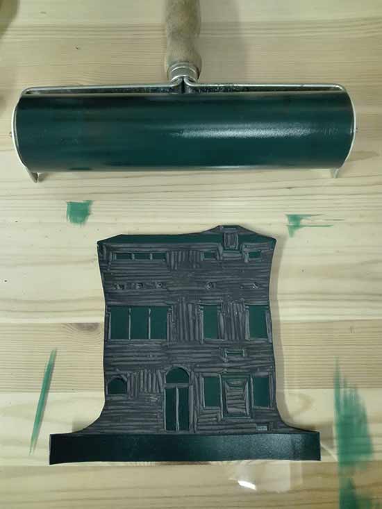 Ho poi portato l’inchiostro dal rullo alla lastra, facendo attenzione a coprire interamente la mia matrice.