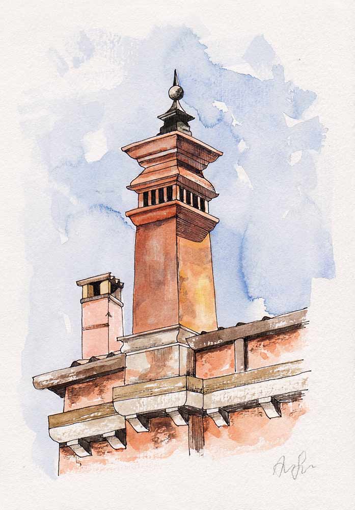 Cartolina di un camino a San Giobbe, nel sestiere veneziano di Cannaregio.