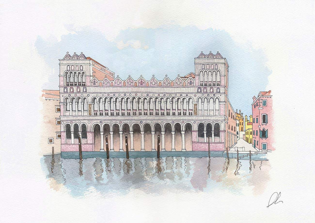 La sua doppia loggia in stile veneziano-bizantino mostra lo scopo per cui l’edificio è stato creato: un deposito commerciale per merci provenienti dall’Est.