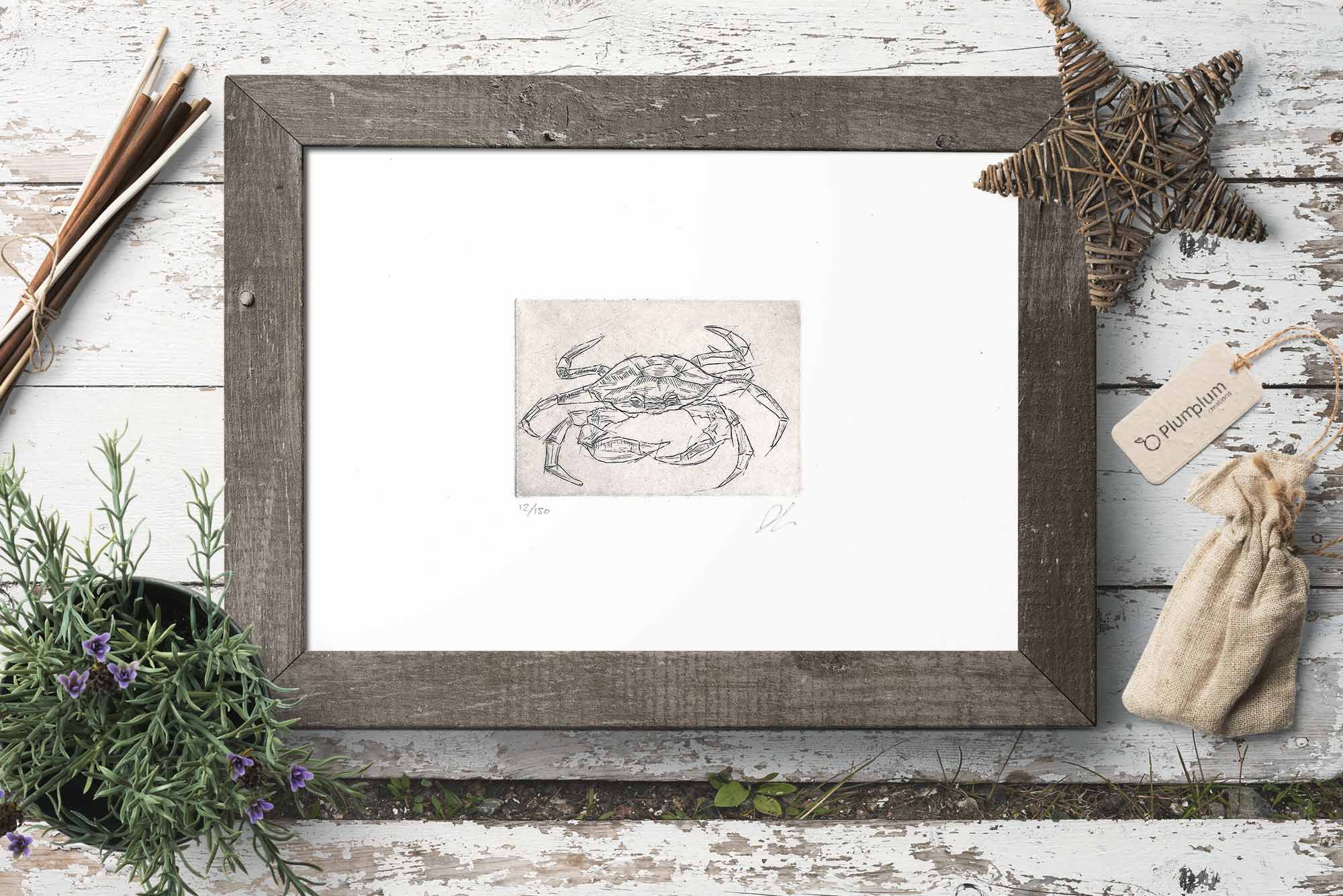 Incisione di un Granchio Carcino (carvings aestuarii). Questo tipo di granchio è il tipico granchio che vive in prossimità dei litorali, nativo del Mar Mediterraneo e facilmente reperibile in tutta Italia.