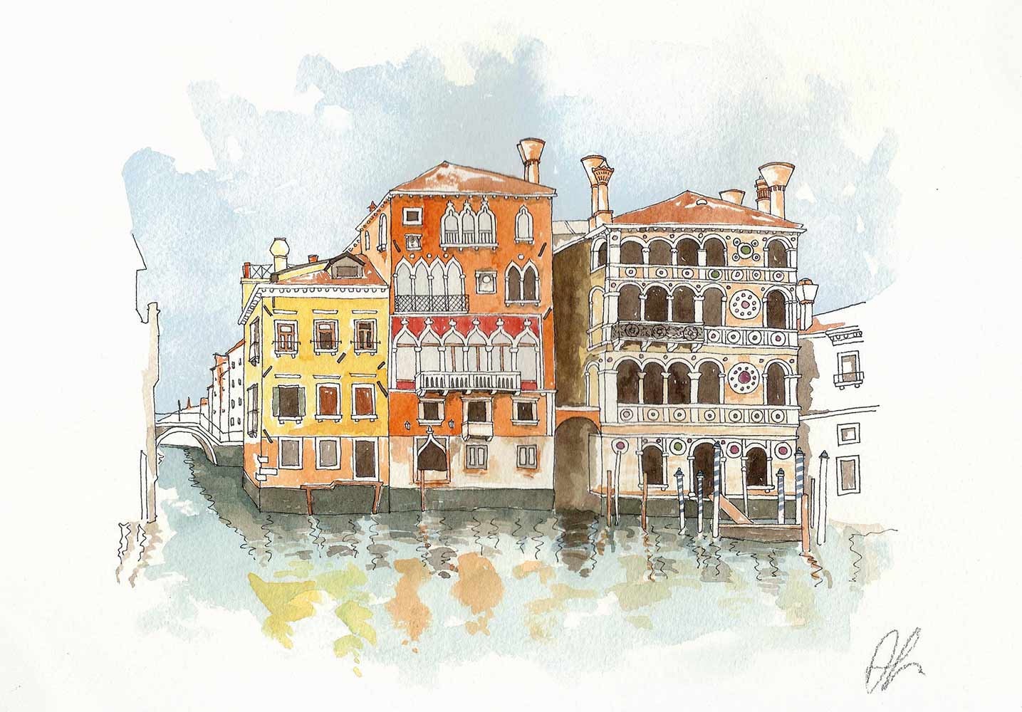 The first palace on the left is a house on Rio della Fornace which was in the 18th century a very busy brickyard or fornace.