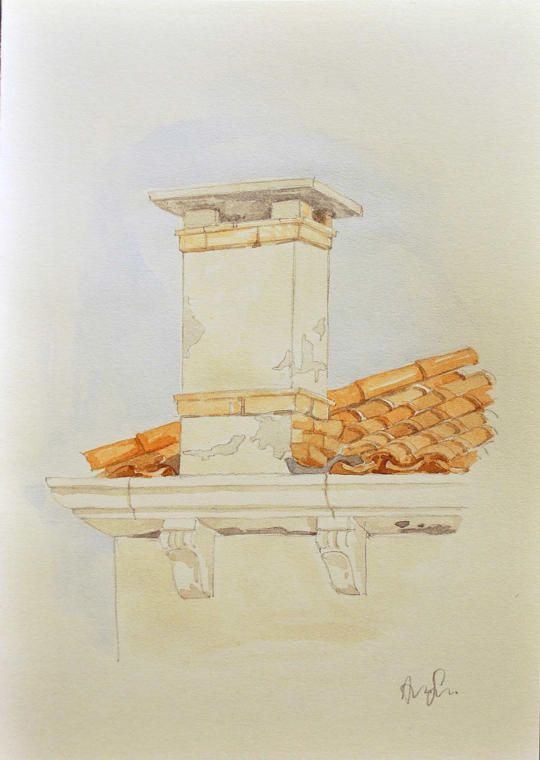 Original watercolor of a venetian chimney (Venetian chimney #06) made on ivory Favini card acid-free 200 gr