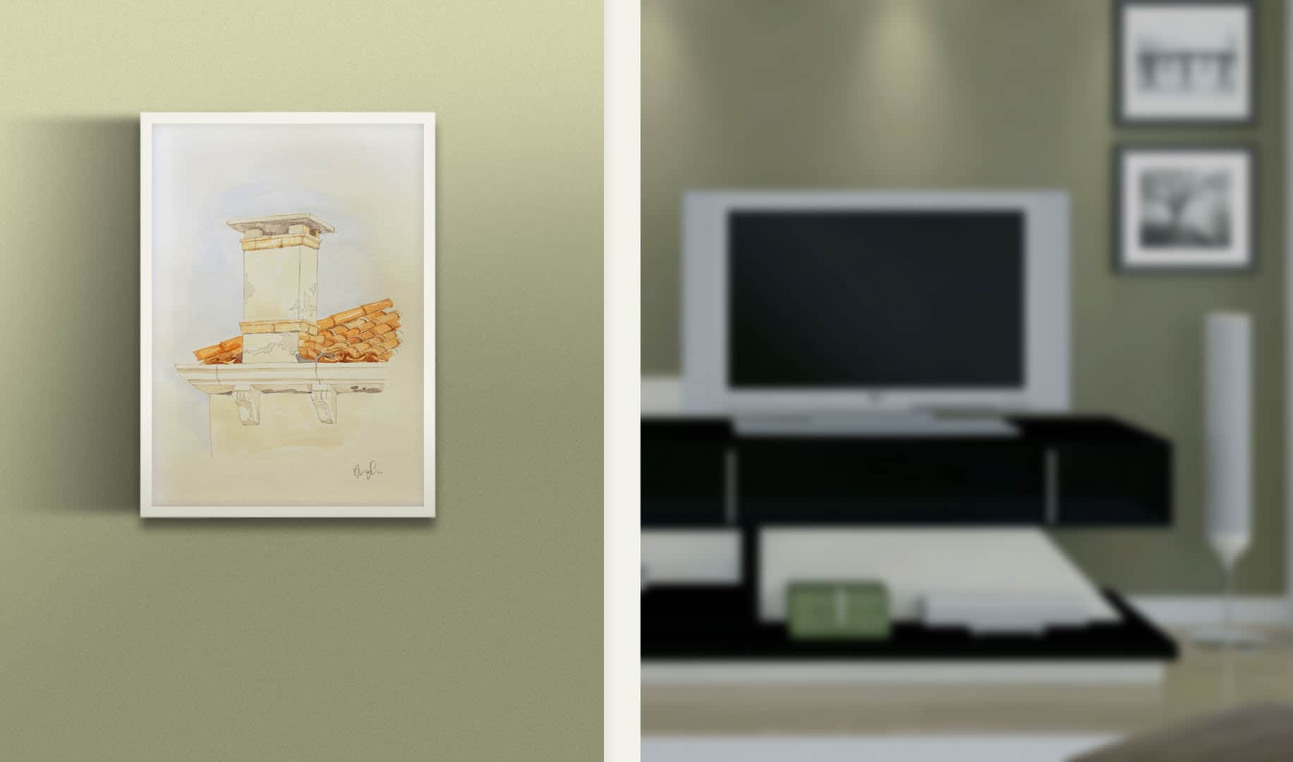 Still life drawing of a chimney I see from the window of my house. I left the drawing with the pencil and then I colored with slight watercolor brushstrokes.