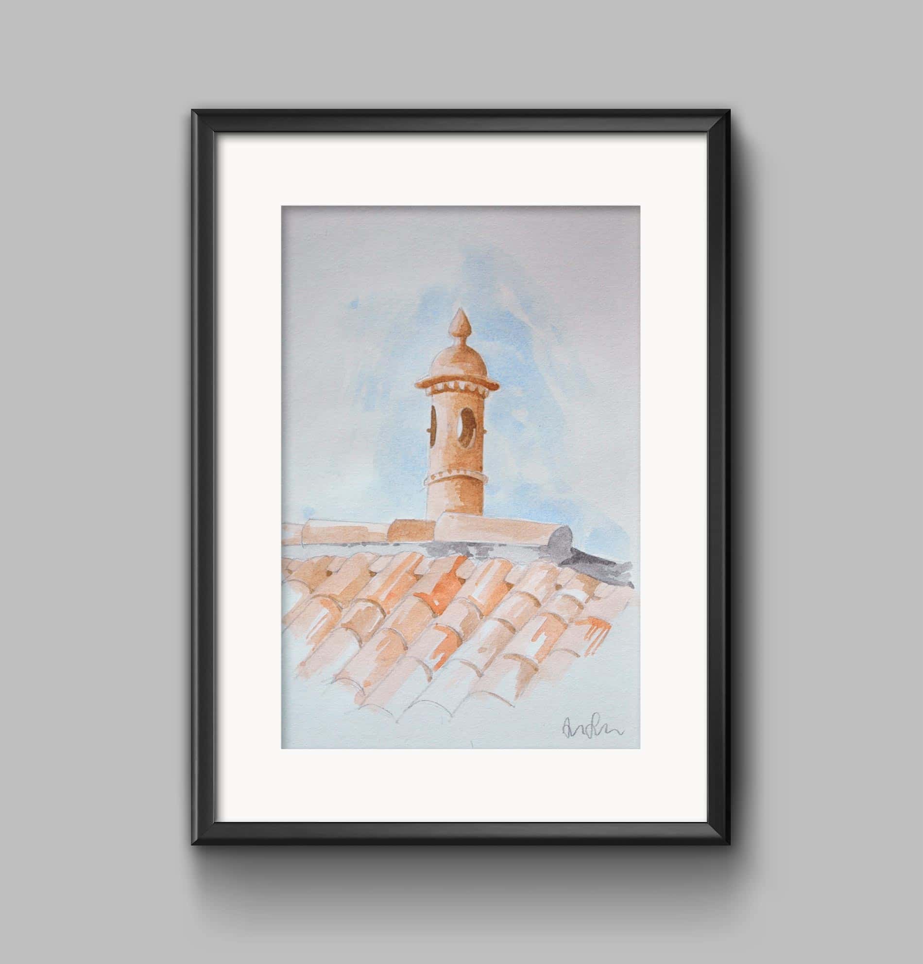 Original watercolor of a venetian chimney (Venetian chimney #06) made on ivory Favini card acid-free 200 gr